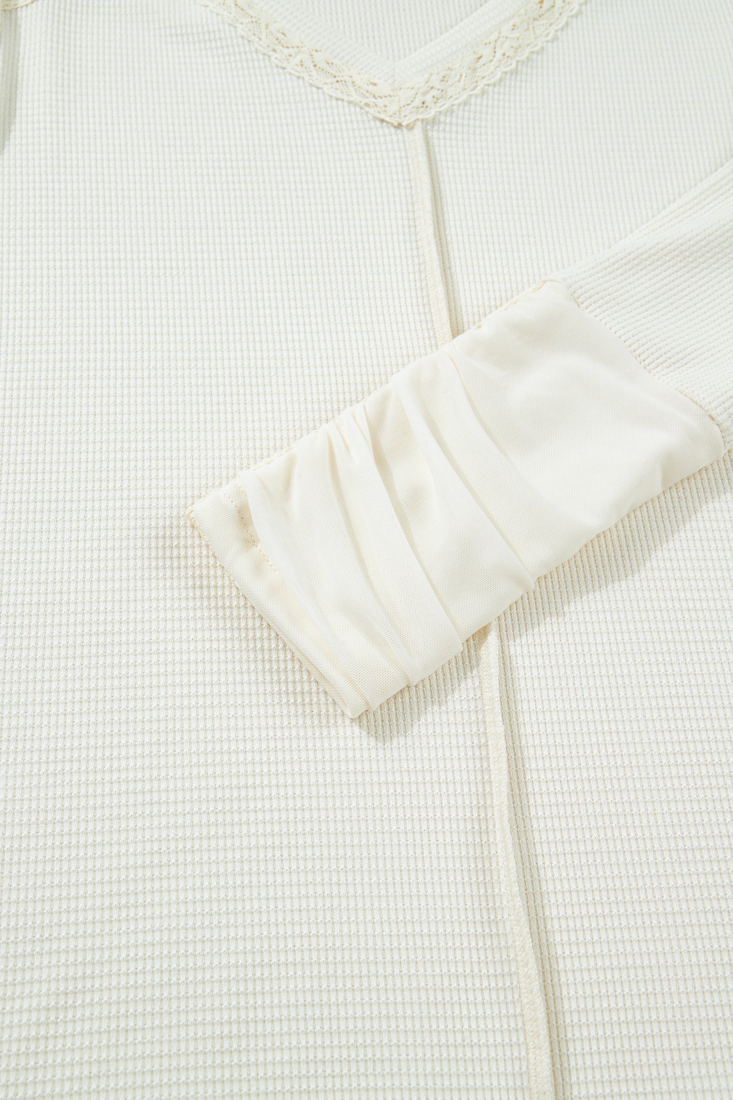Easygoing with a hint of flair in this casual long sleeve top. The solid color top has exquisite lace and pleated details. The v neck design with lace detail is flattering and versatile. Pair this stylish top with jeans or skirts for your daily outfits.